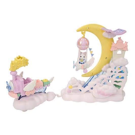 van dromen. Verbind de trein en de maan om ze samen te laten rollen, of speel apart met de maan en de trein. Draai aan het wiel om de maan te laten bewegen. Het ruimteschip van Baby Cat Latté komt los van de maan en kan apart gespeeld worden. Beweeg de trein op en neer zoveel je wilt. De droomparade bevat de baby Latté Cat.
