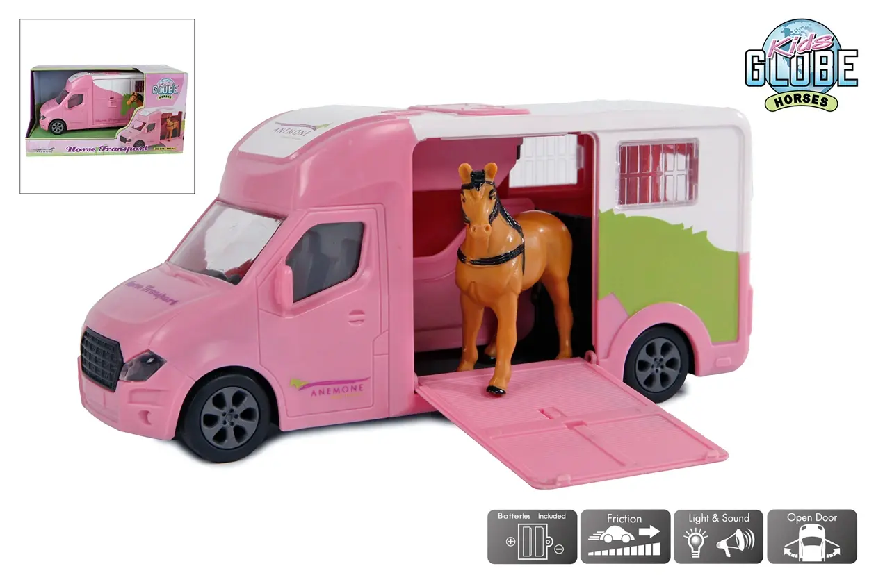 Kids Globe Anemone Paarden truck roze, met licht en geluid