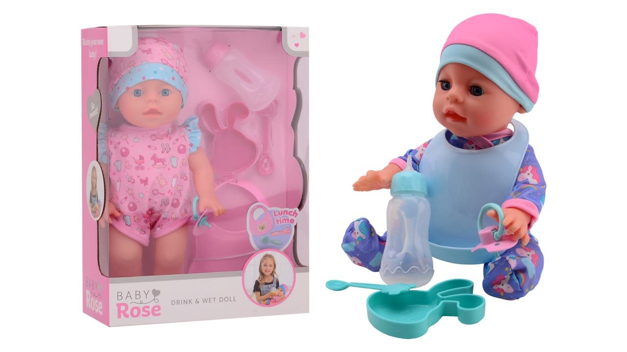 JohnToy Baby Rose drink- en plaspop - 30 cm