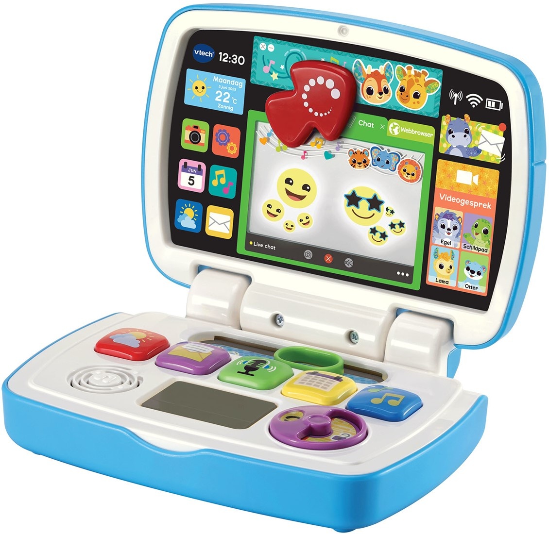 Check je mail, kalender en de weersvoorspelling én luister naar muziek met Baby’s Eerste Laptop! Speel met de laptop en druk op de toetsen om te ontdekken wat hij nog meer doet. Tijdens het spelen verschijnen er grappige emoticons op het magische scherm! Kijk, je hebt een e-mail van één van de dierenvriendjes!