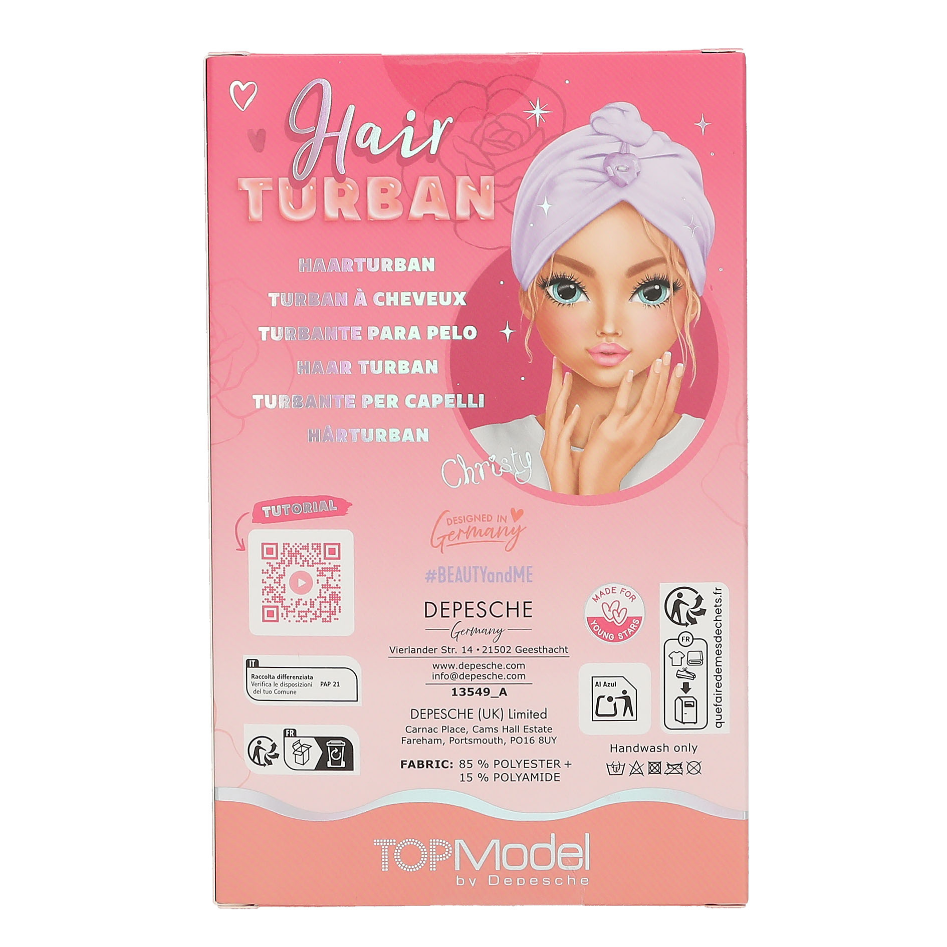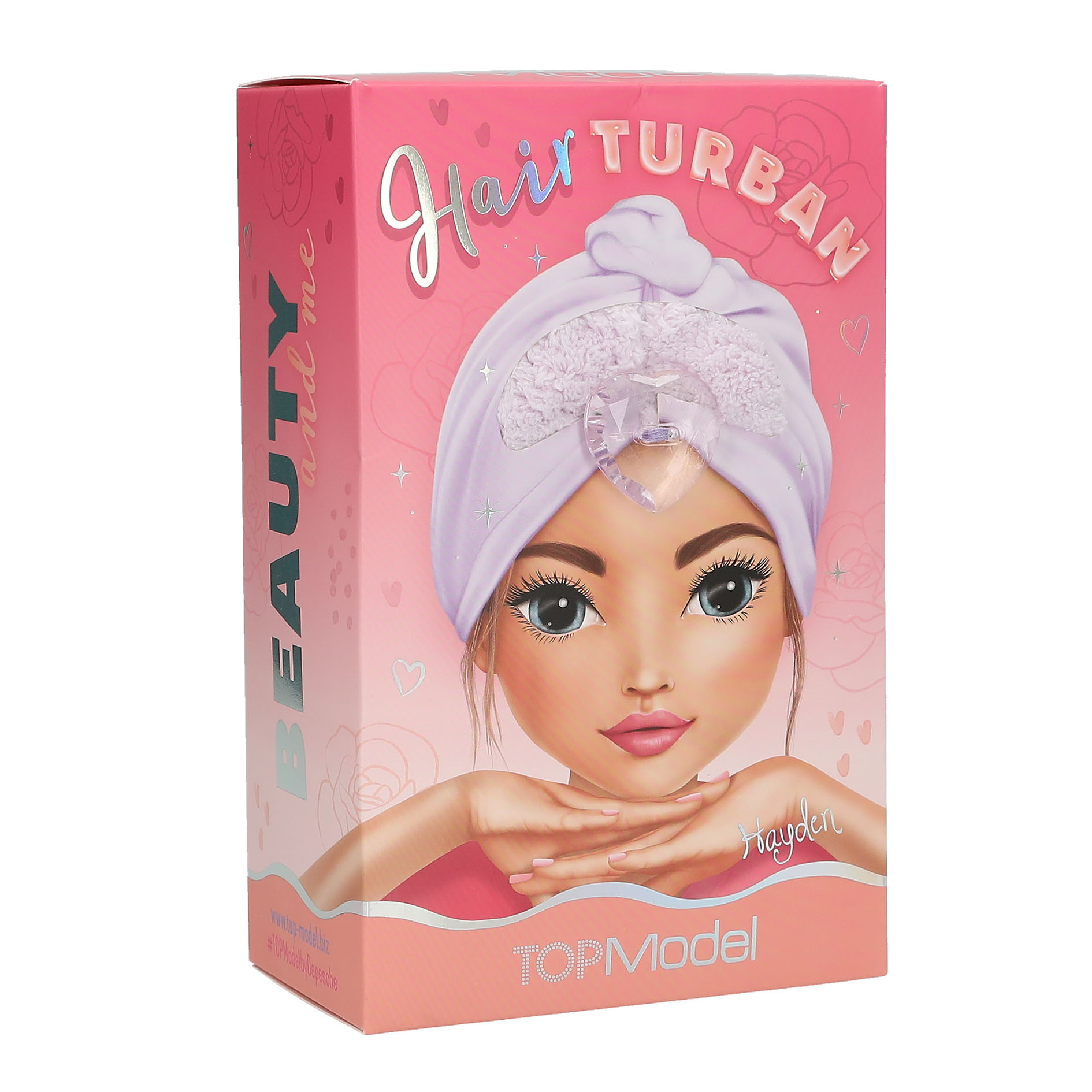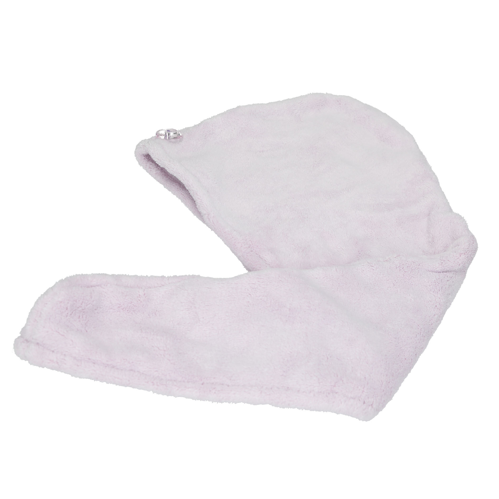 Handig na het wassen van je haar: de haarturban van TOPModel in zacht paars kun je heel makkelijk om je natte haar wikkelen en met de witte, edelsteenachtige knop vastzetten. Materiaal: 100 procent polyester.
