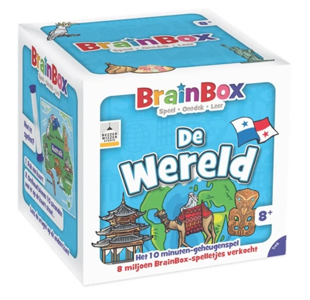Brainbox is een leuk geheugen- en observatiekaartspel, met wereledwijd 8 miljoen verkochte exemplaren. Het spel test je oog voor detail. Alle antwoorden staan op de kaart, maar je hebt slechts 10 seconden om de kaart te bestuderen. Wereldeditie: Speelkaarten van landen uit de hele wereld Wereldkaart, hoofdsteden, bezienswaardigheden en nationale iconen.