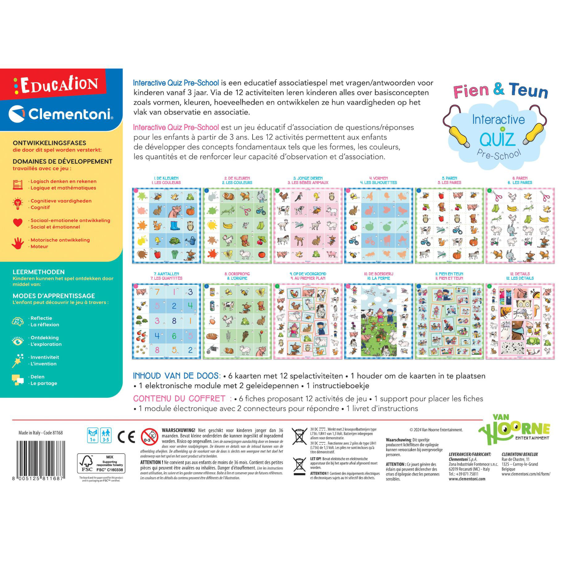 FIEN EN TEUN INTERACTIEVE QUIZ JUNIOR. De Fien en Teun Interactieve Quiz Junior, een educatief associatiespel met vragen/ antwoorden in 12 leuke activiteiten om over basisconcepten voor school te leren.