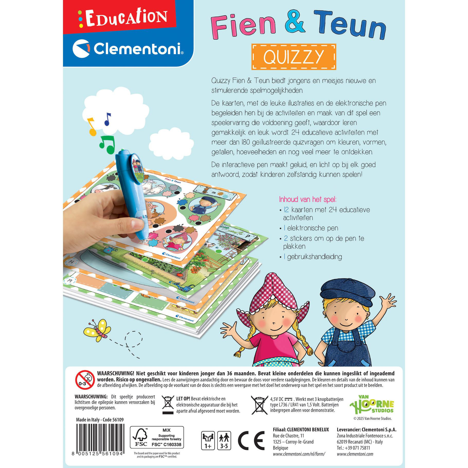 Meer dan 200 educatieve quizzen die met de leuke elektronische pen kunnen worden opgelost. Kinderen kunnen langzaamaan typische begrippen voor kleuters leren zoals vormen, kleuren, ruimtelijke oriëntatie, cijfers en hoeveelheden. De pen geeft een geluids- en lichtsignaal bij elk goed antwoord, zodat kinderen zelfstandig kunnen spelen en hun vorderingen kunnen controleren zonder de hulp van een volwassene. Iedere activiteit stimuleert de ontwikkeling van de aandacht, de observatie en de logica.