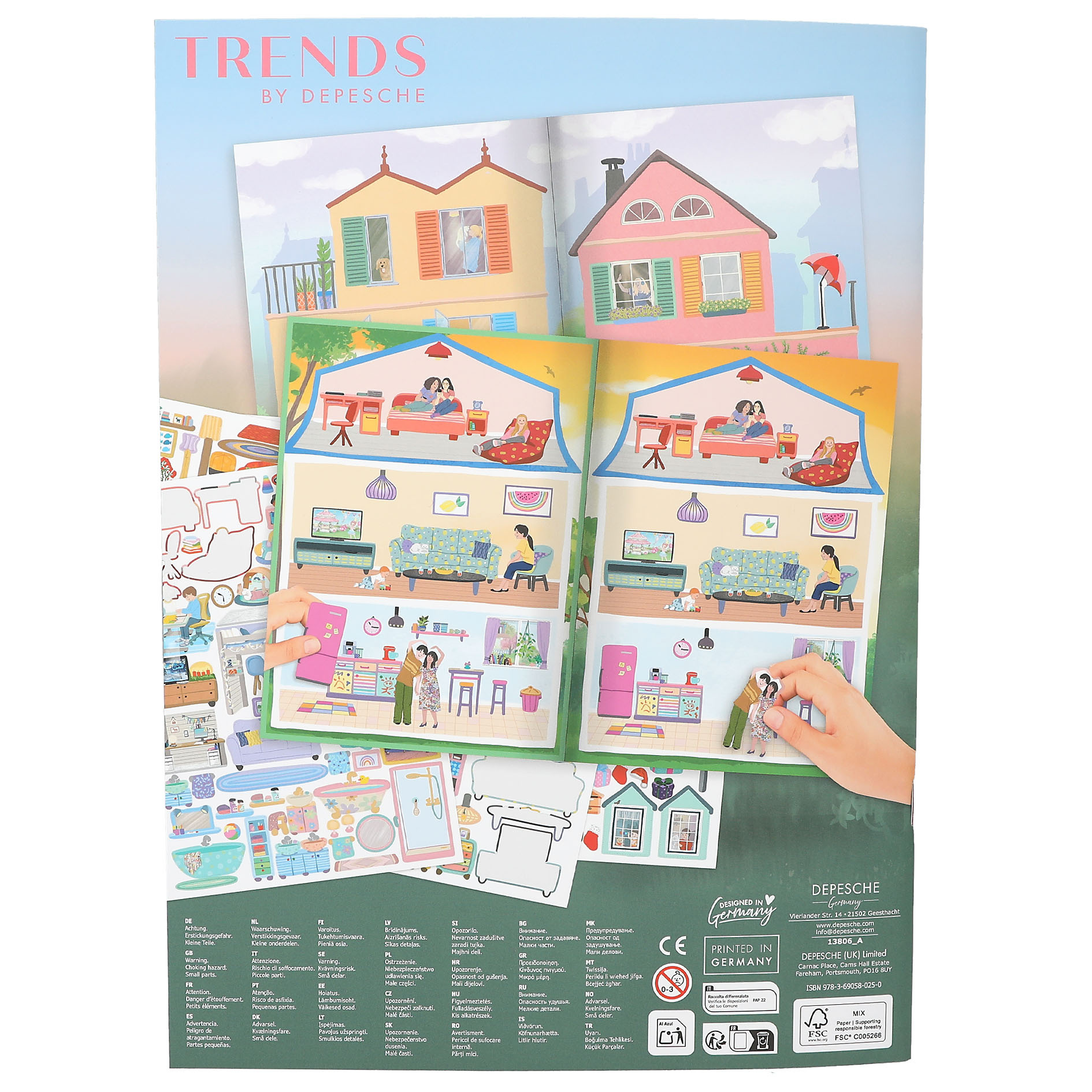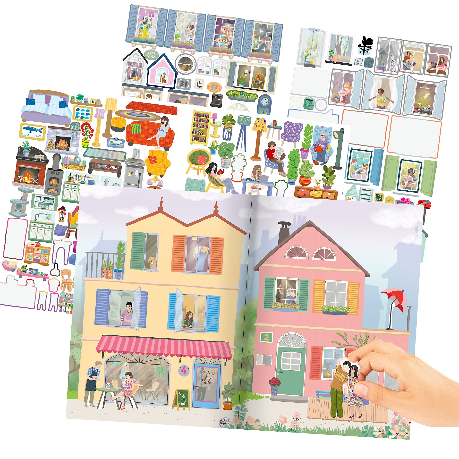 Wel 420 stickers om verschillende droomhuizen in te richten: het stickerboek Create your Sweet Home heeft 24 mooie achtergronden die je hoe je maar leuk vindt, met de stickers kunt versieren.