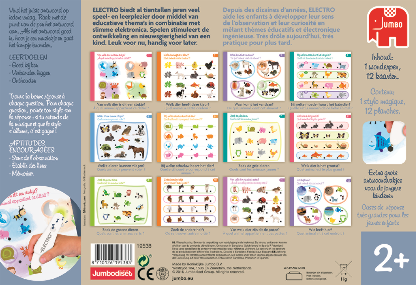 Educatief vraag- en antwoordspel speciaal ontworpen voor kinderen van 2 jaar en ouder. 12 grote kaarten met tekeningen & foto's. Ontdek babydieren, diersoorten, vormen, kleuren en nog veel meer! De antwoordvakjes zijn extra groot voor de jongere kinderen.