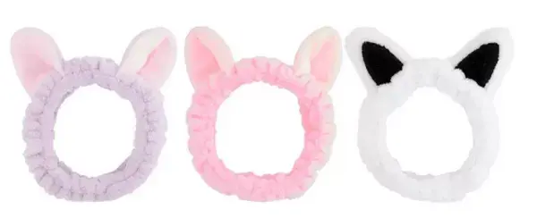 Deze heerlijke make-up haarbanden zijn verkrijgbaar in 3 leuke en schattige versies: een roze beer, een witte kat en een paarse muis.