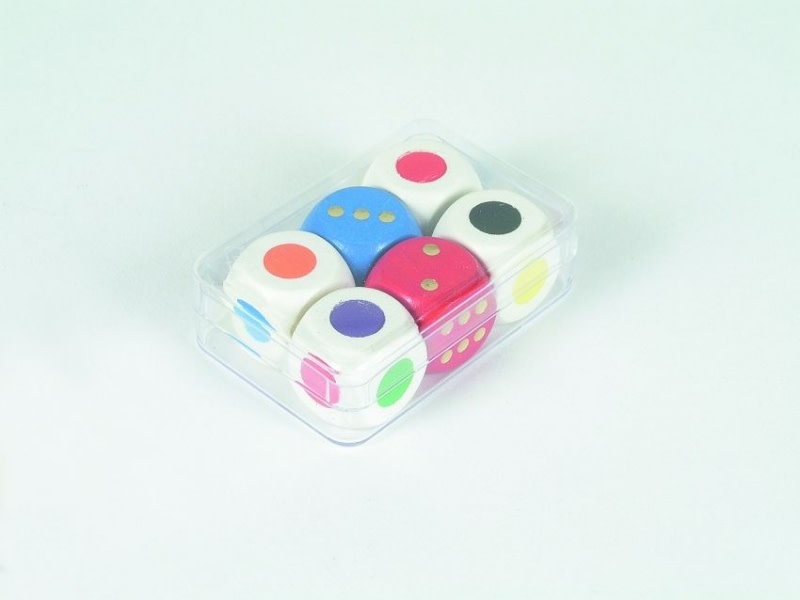 Kleur: 4 kleurdobbestenen en 2 gekleurde dobbelstenen