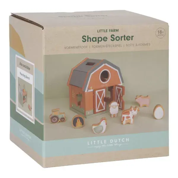Zorg ervoor dat de boerderij dieren in deze vrolijk houten schuur gaan. Zoek de juiste vorm! Via de schuurdeuren kunnen de dieren er weer uit. Dit vormt de oog handcoordinatie en leert je kindje vormen herkennen. Leuk en leerzaam dus.