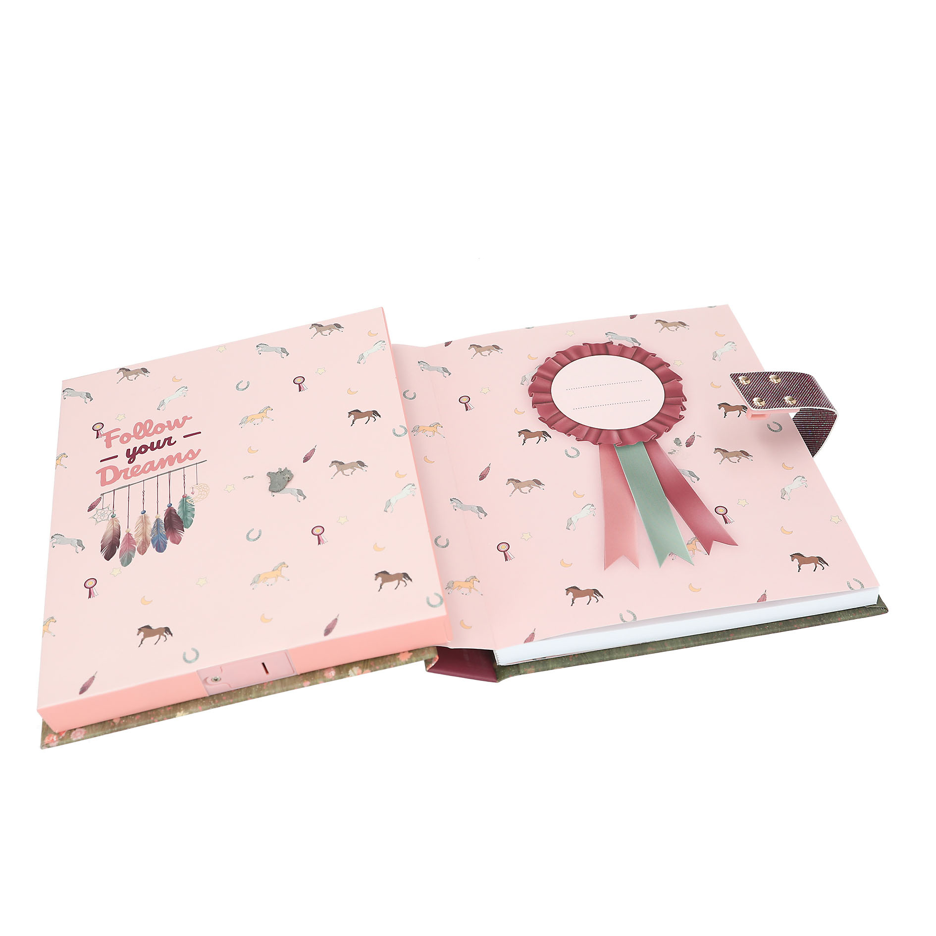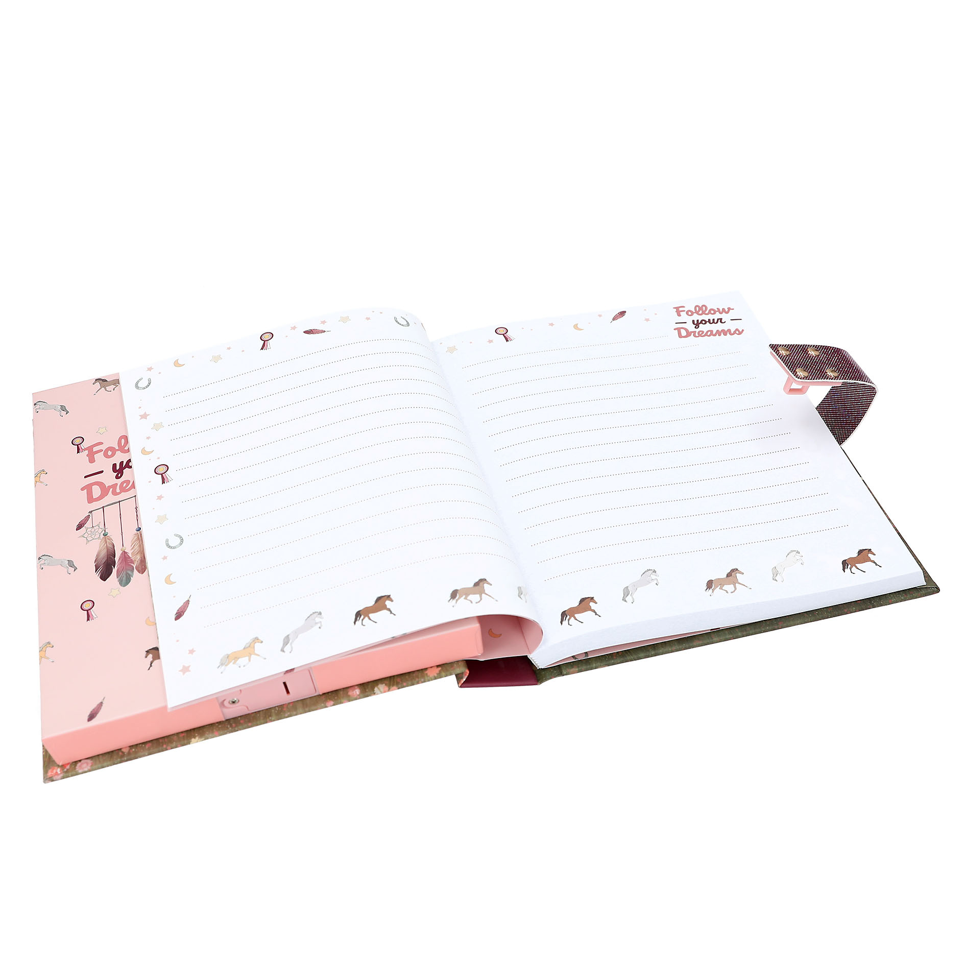 Voor geheime gedachten en belevenissen: Miss Melody's dagboek, in zacht roze en rode tinten, heeft een dromerige afbeelding op de cover van twee paarden in een bloemenweide bij zonsondergang. Het dagboek is ook liefdevol geïllustreerd aan de binnenkant en heeft 80 fijn gelinieerde pagina's. Het slot gaat alleen open wanneer de juiste viercijferige code (persoonlijk in te stellen en te veranderen) wordt ingevoerd. Dan hoor je ca. 20 seconden de hit "Wildest Dreams" van Taylor Swift.