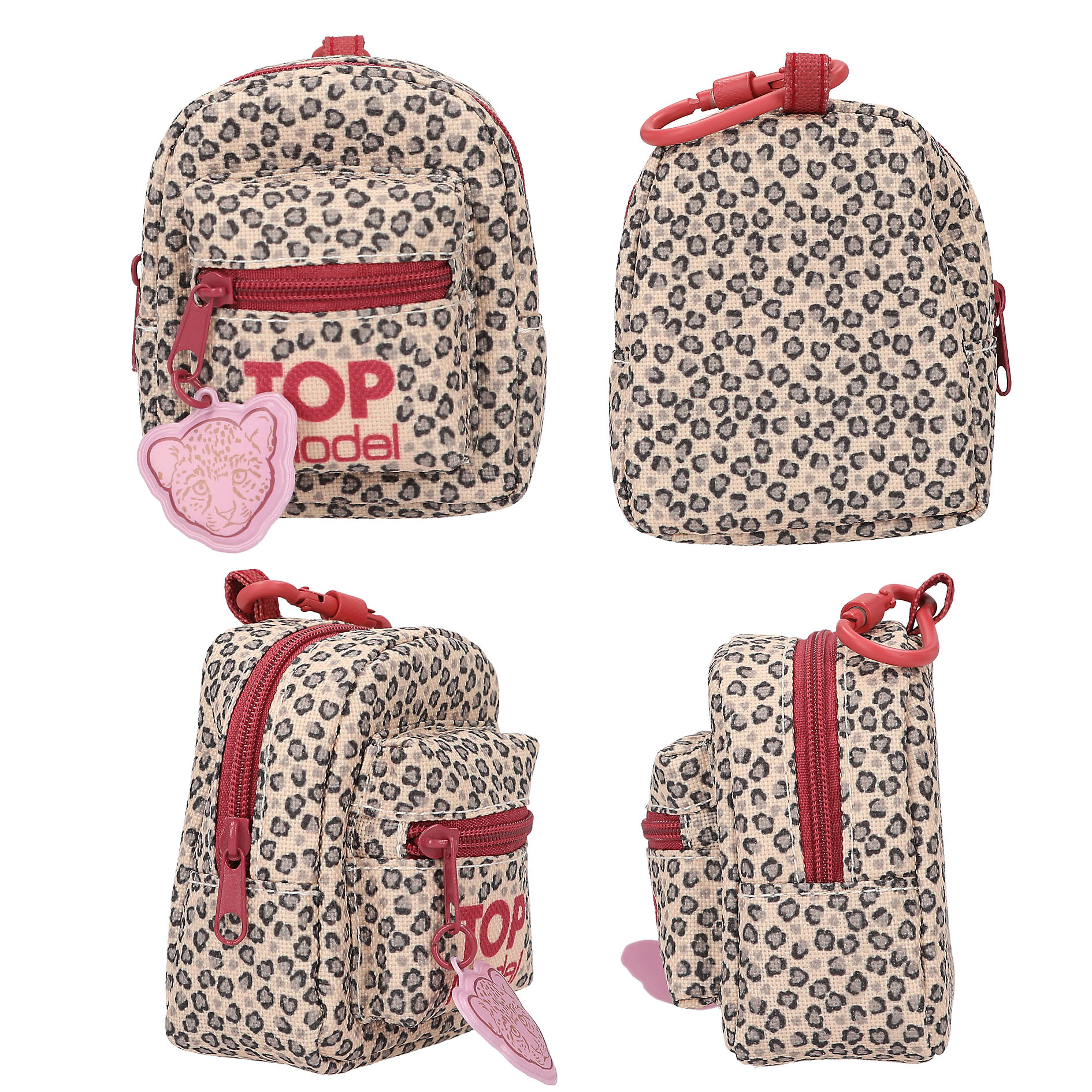 De TOPModel mini rugzakken bevatten alles wat je nodig hebt om aantekeningen te maken: een klein potloodje, een ronde gum met print en een schattig notitieboekje. Allemaal ontworpen in een bijpassende stijl. Verkrijgbaar in twee designs: een trendy panterprint look en met mooie, tweekleurige hartjes. De kleine rugzakken hebben een karabijnhaak om ze b.v. aan een tas of sleutels te bevestigen. Materiaal: 100 procent polyester.