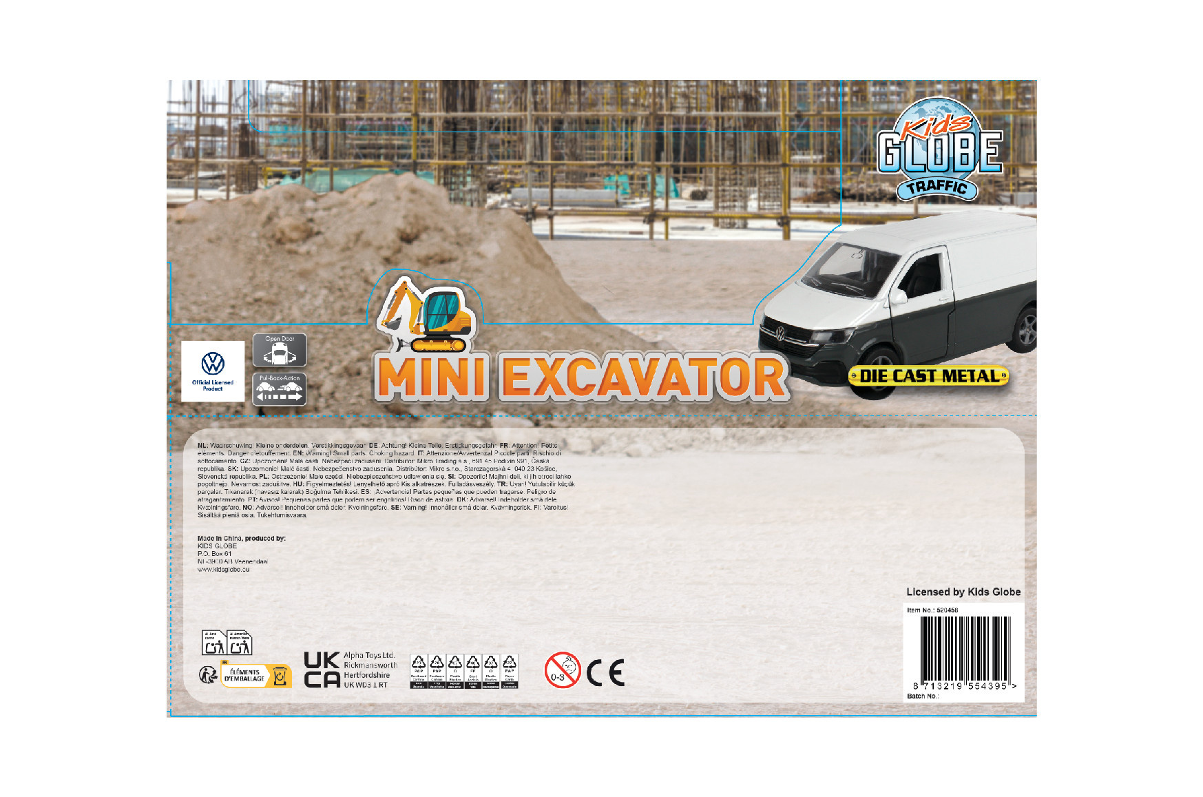 Kids Globe VW Transporter met Minigraver op aanhanger - met pull back functie