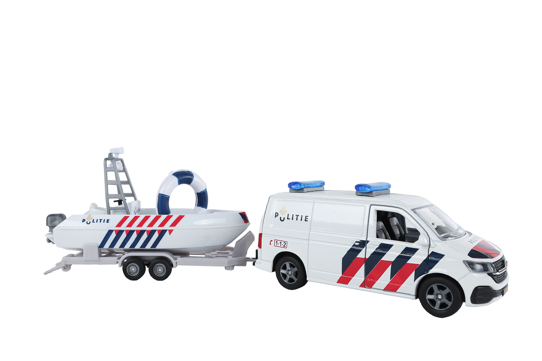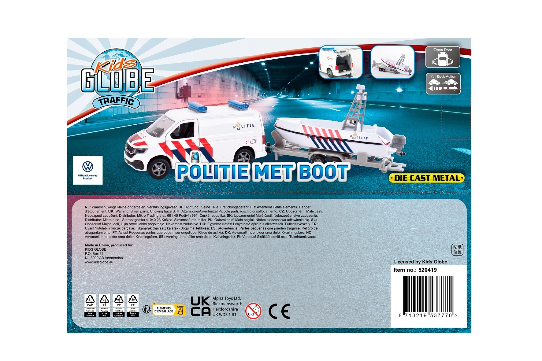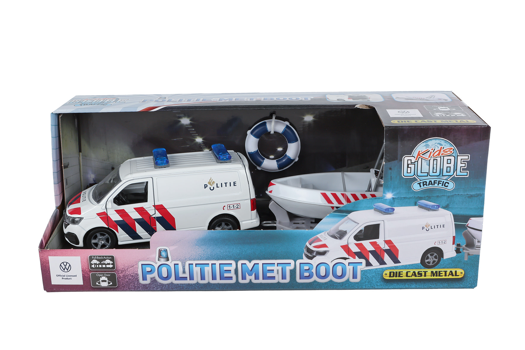 Kids Globe VW Transporter Politie met boot - met pull back functie