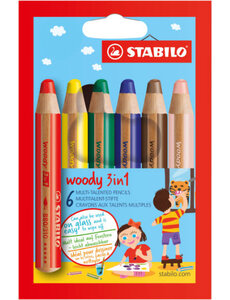 In het ARTY etui met 6 stuks vind je de volgende kleuren: 100 wit, 205 geel, 310 rood, 405 blauw, 470 turquoise, 750 zwart. De STABILO Woody 3in1 is de ideale keuze voor eindeloos creatief plezier.